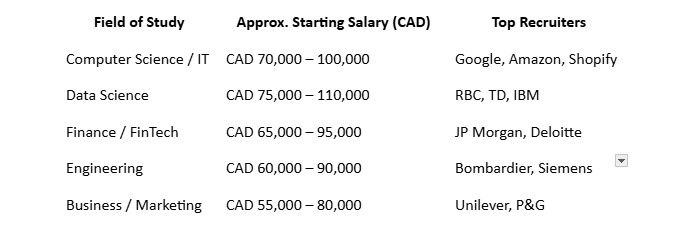 2. What salary can I expect after MS in Canada? Most graduates earn between CAD 5,000–8,500 per month depending on the field.