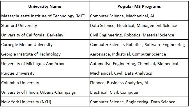 9. Top Universities for MS in USA